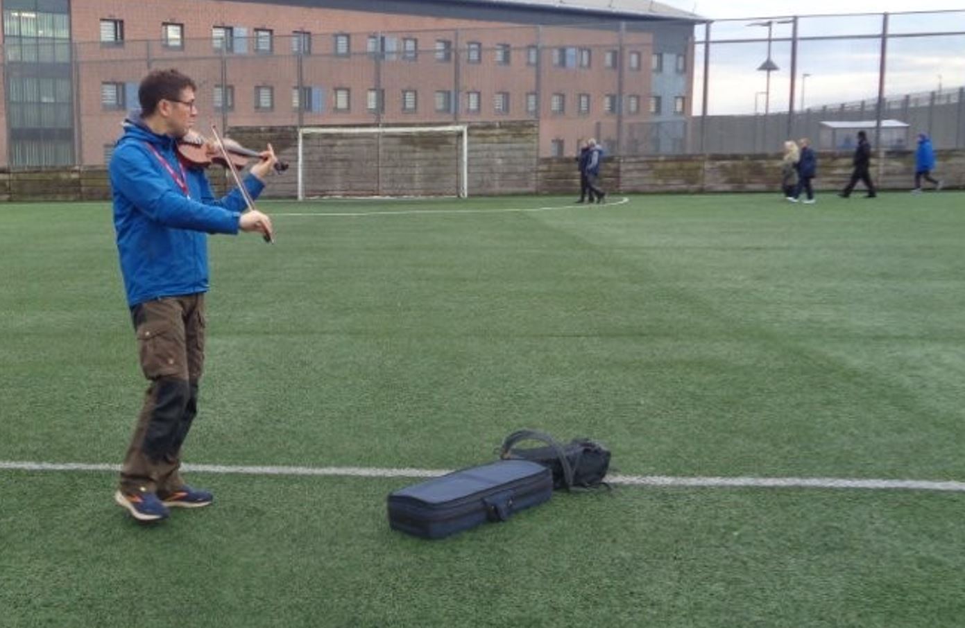 Alec Thompson Miller – Ace Voices playing his violin in the middle of the walls of the prison